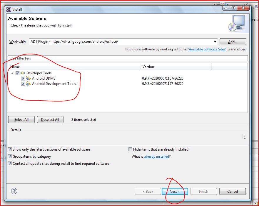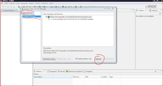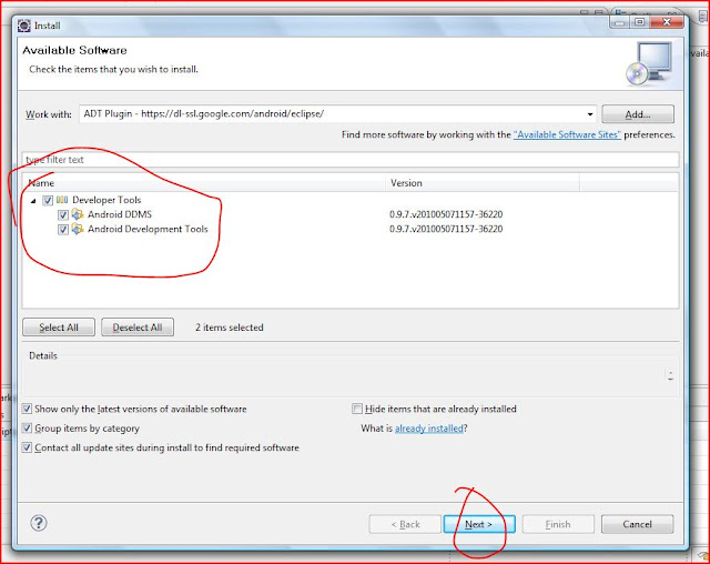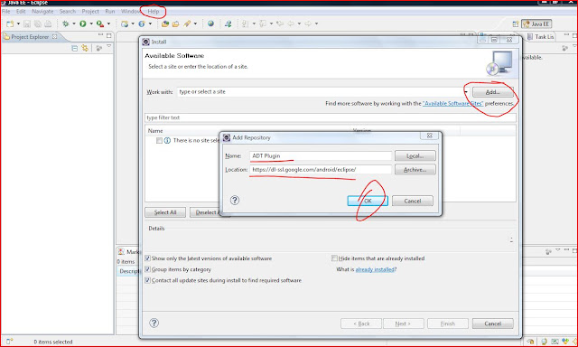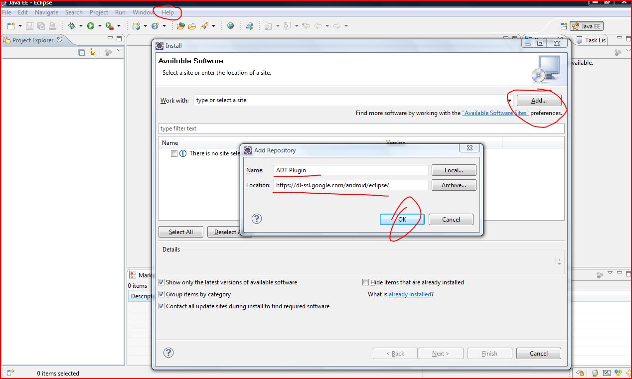 Menusunden açılan ekrana Android plugini : ADT Plugin ‘i tanıtmamız lazım. Bunun için indirdiğiniz plugini gösterebileceğiniz gibi yine aynı sayfada bulunan Update sitesini de ekleyebilirsiniz.