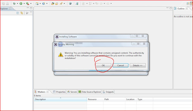 Arada yukarıdaki uyarı mesajı ile karşılaşırsanız kabul edin. İndirmesi bittikten sonra eclipse ‘i yeniden başlatmak istediğini söyleyecektir. Bir ok ‘de buraya ve başlasın yeniden..